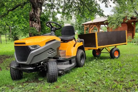 Прицеп для садового трактора делает его идеальным инструментом для всех, кто часто работает с грузами на участке, повышая производительность и удобство работы.